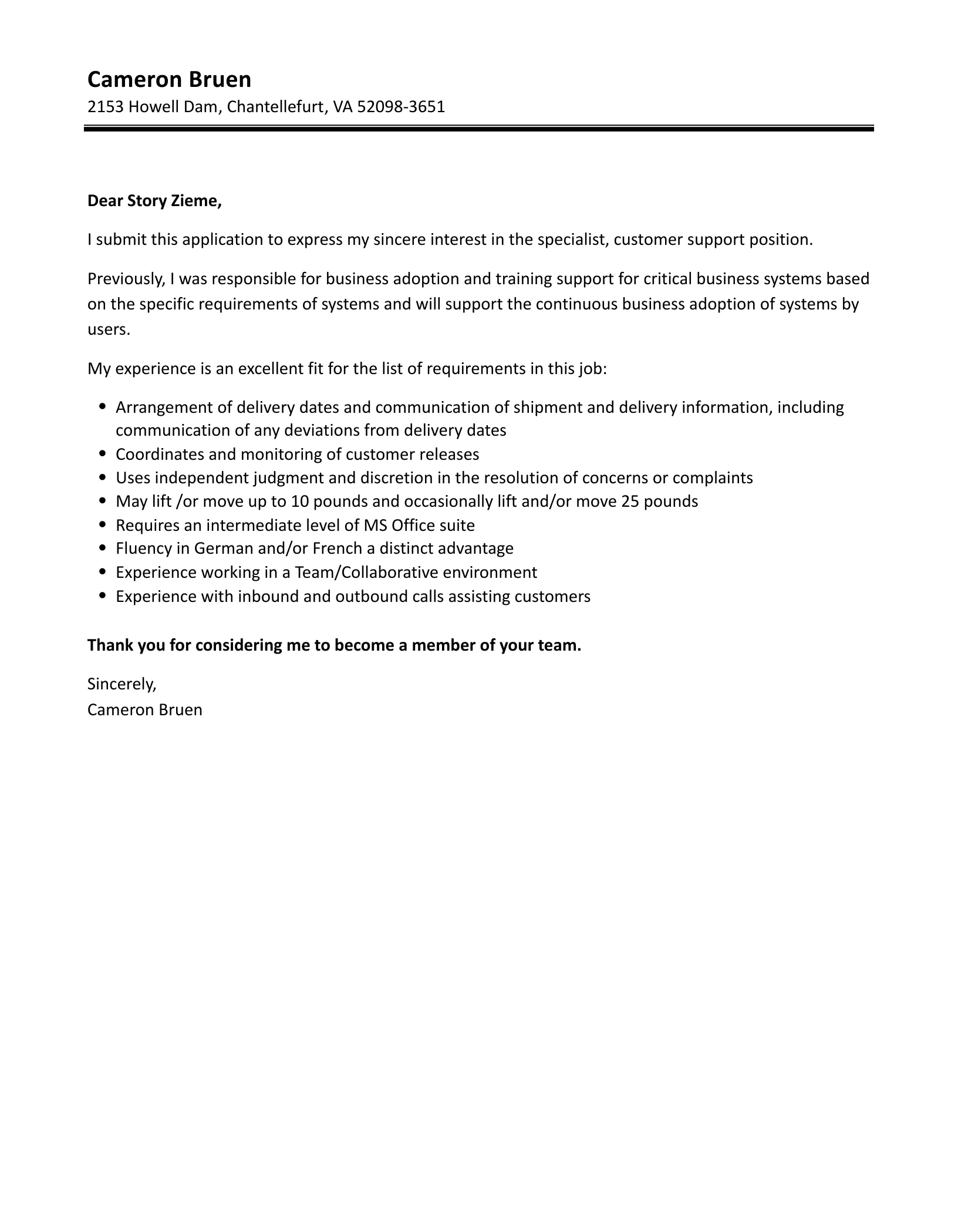 Customer support specialists must be excellent problem-solvers. In your cover letter, highlight your ability to analyze problems, identify solutions, and implement them effectively. Describe instances where you successfully troubleshooted and resolved customer issues, detailing the steps you took and the positive outcomes achieved. Use the STAR method (Situation, Task, Action, Result) to provide clear and concise examples of your problem-solving skills in action. This will give the recruiter a clear indication of your capabilities.